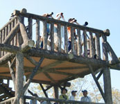 中学生の杉山君がキビタキ発見。台の後ろ側です。近いのに歓声が