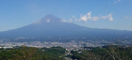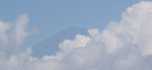 富士山は頂上だけが白く輝いていた。ところどころに雲が