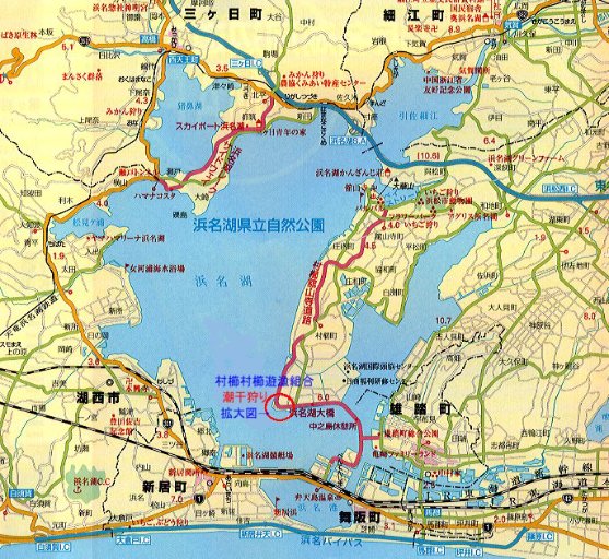 浜名湖は、静岡県の最も西側に位置し、東京と大阪のほぼ真ん中にあります。北には、東名高速道路、そして南には、国道1号線とJR東海が走っていますが、弁天島駅からと浜松駅からのバスの本数が少ないので村櫛へ潮干狩りに来てくれるお客様は、マイカーか観光バスで来る事をおすすめします。