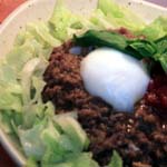 (スパイシーなひき肉とトマトレタスを挟んで食べます)