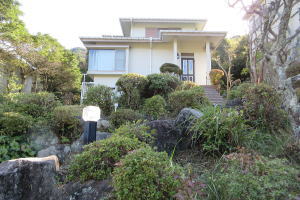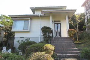 伊東市宇佐美・JR宇佐美駅より約3.6km。宇佐美みのりの村さくらの丘に在る中古戸建のご紹介です。道路から高台の傾斜地に建っている戸建です。門扉を入り敷地内の外階段で約35段ほど上がって玄関となります。外階段周りは植栽されており、眺めながらゆっくりと上がってください。家屋は昭和63年築ながら、部分的なリフォームや改修や増築を行われており、状態はいいと思います。14帖LDからは山風景が眺められ、約6帖のキッチンスペースとはセパレートされており使い易そうに感じました。1階の和室8帖は陽当り良く、3箇所の押入れが設けられています。2階にも陽当りの良い8帖和室があり、一間の床の間と押入付きです。6帖の洋室は個性的で書斎などの利用にもいいと思いました。もう1室は平成2年に増築(未登記)されたクローゼット付きの洋室で山風景が眺められます。浴室はユニットを交換されておりきれいです。洗面脱衣室は広く、浴室と洗面脱衣室は暖房付きです。またトイレも1箇所増設され、1階に2箇所のトイレが設けられています。庭は隣接家屋などの陰になり十分とは言えませんが、ガーデニングなどお楽しみいただけそうです。RC造りの書庫の天井部分でBBQなんかもよさそうです。車庫は1台格納可。分譲地運営のバス停まで徒歩2分ほど。