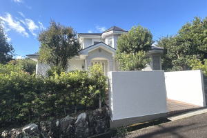 伊東市八幡野・大室高原別荘地6丁目にある中古戸建のご紹介です。伊豆高原駅から約3.3km。「大室高原」バス停からは約800mの立地に在り、国立公園内別荘分譲地ならではの自然が残る環境です。概ね平坦な敷地に建っている、昭和63年築の4LDK+納戸の建物で、内外装ともに状態は良好です。南西向きの広くて明るいLDKは魅力で、掃き出し窓から庭へ出ることができます。1階には陽当りの良い床の間付きの10帖の和室があり、客間としてもいいお部屋になりそうです。2階には居室3部屋と納戸が設けられ、各居室の押入れと2階の納戸で、収納力も確保されています。石張りのお風呂には温泉が引かれたいますので、の〜んびりと温泉浴もお楽しみください。庭は概ね平らな部分が広く、芝庭や改訂菜園なども楽しめそうです。眺望は2階の洋室から隣家屋根越しに大室山が望め、バルコニーからは冬の葉が落ちた時期は、海がチラリ見える程度です。駐車場2台駐車可。自然が残り、野鳥の声も間近に聞こえ、澄んだ空気は夜空の星の輝きで分かります。始めませんか「伊豆暮らし」