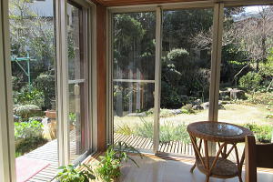 リビングから庭へ |
