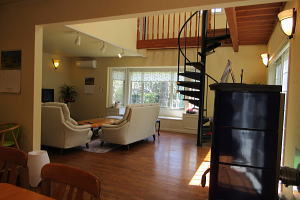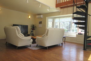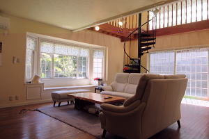 リビング・奥に螺旋階段 |