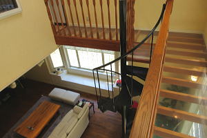 2階から螺旋階段でリビングへ |
