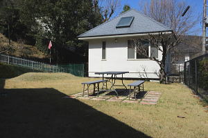 離れは平成3年築で、1階は車庫でその上に木造の離れが建てられています。小上がりの畳スペースがあるワンルームで、ミニキッチン・トイレが設置され、陽当り良く明るい室内でした。敷地は平坦で広い芝庭(※以前はプールがあったそうですが現オーナー購入時は埋められて芝庭となっていたそうです)が魅力で、小さなゴルフグリーンを造ってあります。また、傾斜地部分もあり、ミカンや樹木の植栽や敷地奥に小さな天文台(古くて使えないと思います)もありました。分譲地運営のバス停はすぐ傍。閑静な住環境地に在り、澄んだ空気は夜空の星の輝きで分かります。始めませんか「伊豆暮らし」 |