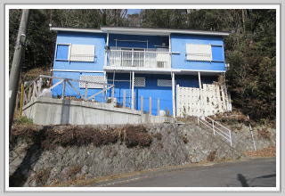 伊東市宇佐美・宇佐美みのりの村にある中古(古家)平家建のご紹介です。別荘としてご利用されている戸建です。道路からは高台の敷地で、外階段で20段ほど上がって玄関です。外階段の途中にテラスがありBBQなど楽しめそうです。コンパクトな間取りの昭和51年築の平家建で、古さは否めませんが、気になるところは補修されているそうです。南西向きのため陽当り良好な住宅です。コンパクトな間取りの2LDKですので、伊豆を楽しむセカンドハウスなどにいかがでしょうか。敷地が傾斜地で菜園等は不向きです。駐車場はありません。高台の溜め造作も難しいです。オーナー様は前面道路の広い部分に路駐され、別荘として利用しているそうです。