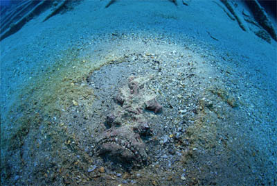 被写体:オニダルマオコゼ デスマスクのようですね。 Nikon F90X/AF fisheye 20mm F2.8/f5.6/1/60/RVP |