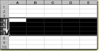 行や列を選択するにはマウスで行います。キーボードからはできません。 |