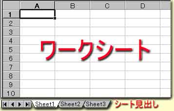 と呼ばれるタブがついており、このタブをクリックすることによりワークシートを切りかえることができます。