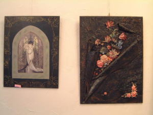 デコパージュ 「デコパージュ」とは、フランス語の「切る」という意味の言葉を語源としたもので、その言葉どおり、好みのプリント絵画を切り抜いて、プラーク(木版)に貼って装飾をしその上から何度もデコパージュ用の透明の仕上げ剤を塗り重ねて、プリント絵画を埋め込み、美しい工芸品を作り上げる手工芸です。 日本では、1970年代より、上陸して大流行をし、現在では、手工芸の一分野として不動の位置を占めています。 最近では、技術的にも欧米を凌ぐような高度な作品が作られるようになり、日本独自のデザインの作品も見受けられるようになりました。 今では、立体的な「3-Dメイション」、又は「シャドウボックス」がアメリカと同じく日本でも楽しめます。 今回開催される「シャドーボックス&デコパージュ二人展」の安藤清子さん(三島市在住)と鈴木和枝さん(富士市在住)はともに、「アメリカンハンディクラフト協会」の講師会員です。