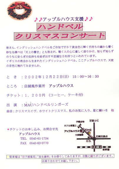 | 名称 | アップルハウス支援 ハンドベルクリスマスコンサート