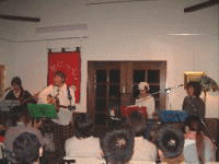 18日に行なわれた「ゆにっと」のコンサート楽しかったですよ。 通常は、リューさんとマー坊とマー坊のママのヨッピさんの三人グループだそうですが、函南のテリーさんが加わり、四人。途中お客さんで来てた「とんび」のお二人も加わり、六人の大所帯となりました。 暖かい・温かい曲で、人の命はもちろん森も木も生物みんなをそして地球を大切に!というユニットさんからのメッセージをいただきました。 (掲示板よりの一部抜粋) |