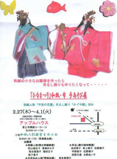 | 主催 | 和紙人形教室 まゆみ会(TEL0545-61-1734 馬場眞由美) |