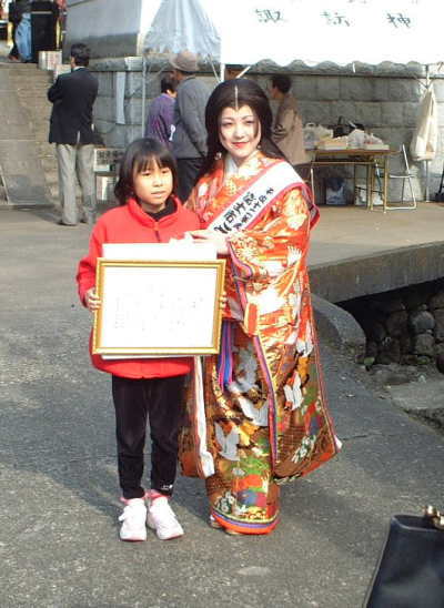 ミスかぐや姫です。 (額を持つ少女はコンクール受賞者の一人です) |