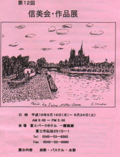 | 案内 | 第12回「信美会」会員による作品展です。 JIRO.FC会員の遠藤瑞江さんの作品が出品されてます。 今年はアルハンブラ宮殿を描いたそうです。 |
