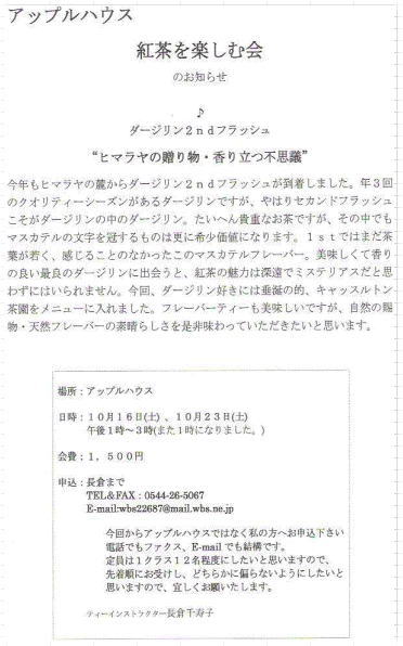 | 名称 | 第6回「紅茶をたのしむ会 ヒマラヤの贈り物 香り立つ不思議」 |