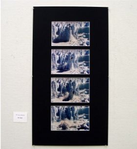 明石さんの作品。タイトル「ペリートモレノ・アルゼンチン」氷河が崩れ落ちる瞬間を捉えた4枚の連続写真です。 |