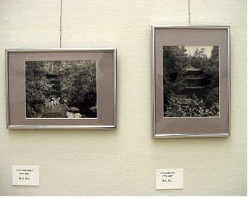 野田さんの作品。タイトル「セピア色の古美術研究旅行」1979年に旅したときの寺、左から室生寺と岩船寺だそうです。 |