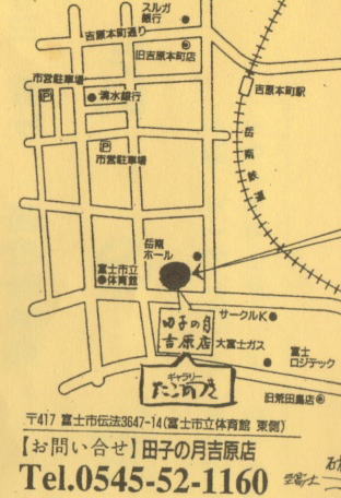 | 会場名 | ギャラリー たごのつき(静岡県富士市) (田子の月 吉原店併設 http://www.tagonotsuki.co.jp/) |