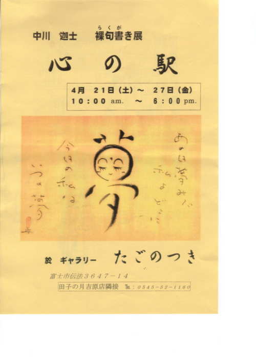 | 名称 | 中川迦士 裸句書き展 「心の駅」 | |