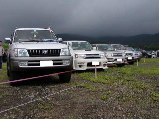 | 明けて2日目の朝です。朝8時の時点で参加者 全員揃ってました。お約束のメンバー車撮影。 |