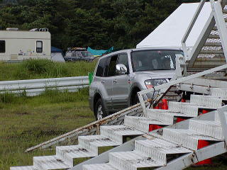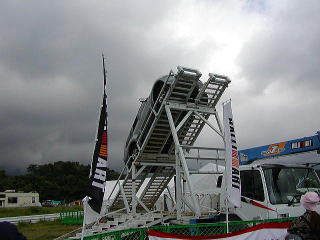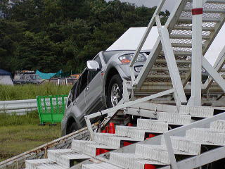 | 朝食後にマターリ | イベント会場では試乗会もやってました。 パリダカのコースに見立てて、いろんな設定が 作ってありました。 |