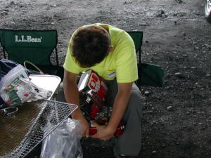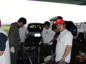 | 火熾しをしているファイヤー君 | 給油中のおかぢ |