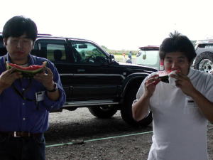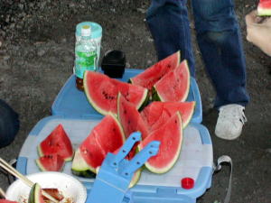 Proさん差し入れのスイカです。 とっても甘くておいしかったです。 |