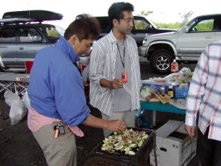 第2ステージ(?)の焼きそばを調理中の