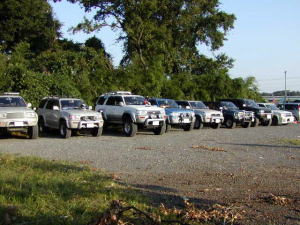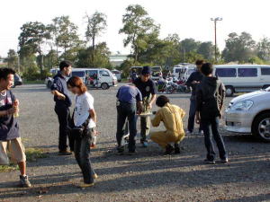 サーキットの駐車場にて。 今回は総勢15名程でした。 |