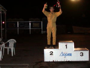 | ファステストラップ獲得(37.823秒)した ゆうわさん。その景品はなんと!ムフフの オッ○イボール(笑) 無理やりって話も・・・。 |