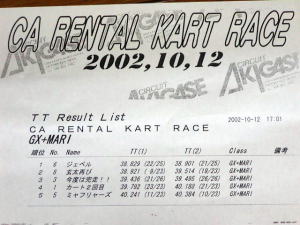 | 予選結果っす。ポールはゆうわさんトコの 「ジェベル」チーム。うちは2番手。今回も のりくんと一緒なのでチーム名は「玄太再び」 |