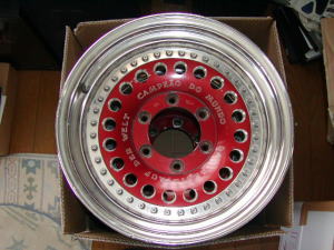 冬仕様がどうにもかっこ悪いので、ホイールの 変更を決意。んで、ヤフオクでチェックしてたら 赤いDフォースが出品されていたので購入 しました。またDフォースです(爆) |