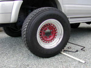 タイヤ交換の時は、いつも車載ジャッキで やっています。ホントはガレージジャッキ 欲しいんですがね(笑) |