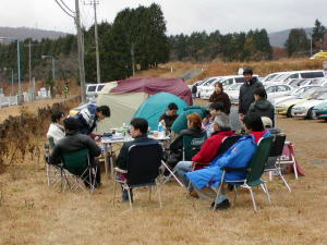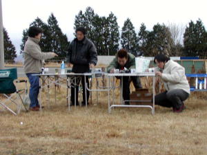 | セルフタイマー設定中の面々。 みんな真剣! |