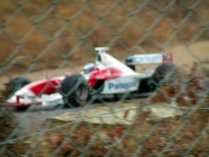 | デジカメでF1の撮影にチャレンジ!! でも、思ったとおりにこの有様。 午後の一眼での方に期待☆ |