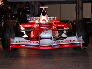 旧ドラサロ前では、フォーミュラトヨタの試乗 をやってました。しかし、やはり難しいらしく エンストしまくってました。 |
