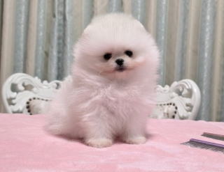 ポメラニアン 6/15生まれ 男の子 ホワイト ¥380.000-(税込み) ワクチン、マイクロチップ代 ¥9.800-(税込み) 少しアンダーショット |