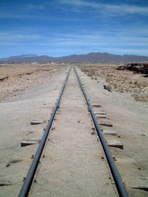 | オレを乗せた「旅」という列車はどこまで行くのだろう? 終着駅などあるのだろうか? この線路のようにどこまでもまっすぐな1本道なのか? それとも大きな別れ道があるのだろうか? オレはただ突き進むのみ! |