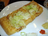 写真は栃尾名物の【ジャンボ゙油揚げ(¥300)】です。 油揚げというには贅沢な20cm超のジャンボサイズの豆腐を揚げた後に更に焼いて香ばしさを引き立てます。 刻みネギが大量に盛られ薬味と醤油で食べます。 館内食堂と屋外販売があり屋外販売はテイクアウトも可能です。 ツーリングレポートはこちら。 |