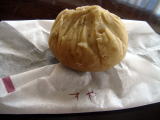 到着がちょうどお昼時となったので、どこかで御飯を食べようと思いましたが、色々と食べ歩きをしたかったので町並みを往復する間に、「栗ふく」、「煎餅」、「五平もち」を買ってお昼ごはん代わりにしました。どれも店頭で作りたて販売しているものです。まんまとお店の策略にハマっている気がしないでもありませんが、この際、気にしません(笑)。