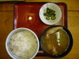 | 函館での贅沢な朝食 (蟹の味噌汁と御飯のセット&イカの刺身&あわび焼き) |