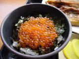 ここで朝食をと思っていましたが、やっぱり食事が出来る場所が1軒しかなく、ウニ丼が名物な土地柄らしいのでどれ位の予算で食べられるかサンプルに目をやると、あえなく撃沈。道道913号線沿線に多数のウニ丼を看板にしているお店があったが、どこも同じ傾向だろうと判断して人生、初ウニ丼は幻と終わったのでした。まぁ、庶民の味覚しか持ち合わせていない私にとって御飯が見えない程の大量のウニはちょっと、苦手ですが。ウニが駄目なら他の海産物を堪能しようという事でお昼も近づいてきていたので以前から一度、立ち寄りたいと思っていた余市の「かきざき商店」さんで朝食と昼食を兼ねたブランチを取る事に決めた。ここは1階が海産物屋さんで2階が直営の食事処となっていて格安で美味しい物が食べられると聞いていた。どんなに並んでも絶対にここで食事をしていくと固く決心してお店に到着。路上駐車している車やバイクもいたが駐車場の空きを待って駐輪。2階にあがり何を食べようかメニューを見ると本当に安い!一部に時価の文字が踊っていましたが写真のイクラ丼とホッケ単品の注文で¥932ですヨ。いくら安いとは聞いていても¥2,000位はするだろうと思っていたので、とてもお得な気分になりました。函館での朝食に続き満足の食事となりました。