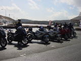 休憩も済んで出発しようとした時に、今ツーリング最大のアクシデントが発生。『ろーりーさん』のバイクがバッテリー上がりで始動できない状況に陥りました。どうやらいつものクセでIGNキーで停車せずキルイッチのみで停車した模様。よって電装系が全てON状態のままとなって短時間ながらバッテリーが上がってしまった様です。しかし今日の彼はツイテいました。『善さん』のトップケースから普段はありえない所持品であるブースターケーブルが現れ事なきを得ます。これも今朝、『善さん』が同じくバッテリー上がりを起こしたおかげ?です。