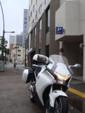 ここからはナビの誘導に従って2日目の宿場所である【ツーリストイン高知】に向かい、18:30にホテルに到着しました。高知での宿泊場所はいつも利用する東横インが進出していないので楽天トラベルで探して予約しました。ホテル裏側の従業員用駐輪場にバイクを停めさせてもらいましたが、全国各地からライダーが宿泊しに来ていてハーレー軍団もいた為に道路に一番近い場所しか確保できませんでした。でも出発時にはすぐに出ることができるので、まぁ、いいっかぁ。
