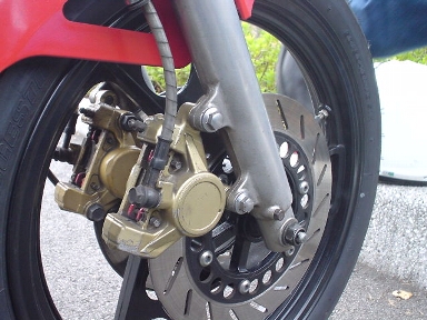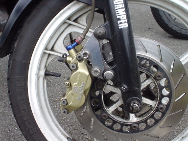 IIDAさんのブレンボは効き過ぎるくらい強力だそうです。が、反面キャリパ本体+サポートによるバネ下重量増が気になるトコロとか