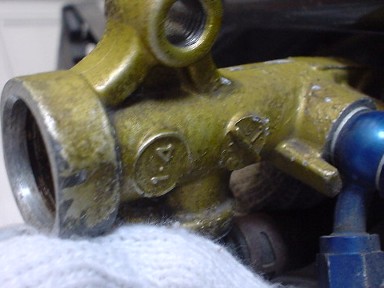新しい車種用のようだ。XJR1300のリヤか?このアングルではホース取出口が写ってないが、ちょと待て!ソレ以前に取付けネジ穴の位置が反対なのでこれもNG・・・