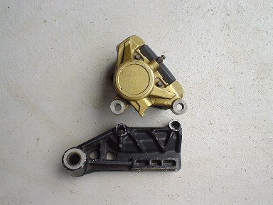そこで、ぱっと見似てるコイツはどうか?同じ取付ピッチ83mmのFZR400(1WG?)系の2ポッド。ピストン径φ42。8mmだ。背中に樹脂フタが付いていてメンテ&放熱にも有利。