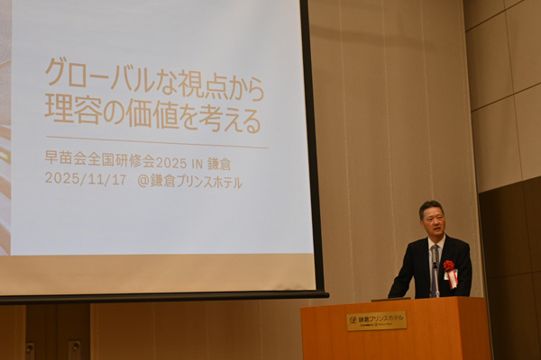 「グローバルな視点から考える理容の価値」と題して、日精ホールディングス株式会社代表取締役CEOの丸山竜司氏による講演を拝聴しました。 |